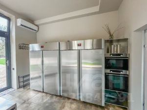 Техническая кухня, выполненная из нержавеющей стали с двухкамерным холодильником, двухкамерным морозильным шкафом, мощной вытяжкой, духовой и микроволновой печью (Asko).