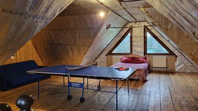 3-й этаж: большая комната 80м2 свободного назначения (теннис, бильярд, бар), гостевая комната, теннисный стол , музыкальный центр.