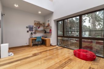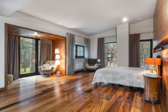 Дом 710 метров имеет функциональную планировку: в доме 4 спальни со своими с/у и гардеробными, гостевая спальня, 2 кабинета, тренажерный зал, игровая, квартира для персонала.