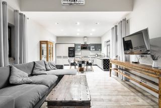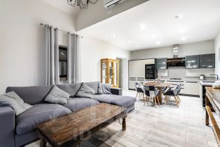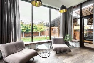 На первом этаже просторная гостиная с панорамными окнами от Пола до потолка с видом на участок, тёплые полы, кухня с полным комплектом гарнитуры (2 холодильника, морозилка, духовка, газовая плита, Посудомойка, система фильтрации воды, микроволновка..)