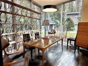 На участке гараж на 2 м/м с квартирой для персонала, беседка с зоной барбекю, открытый бассейн.