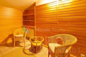 четыре спальни, кабинет, гостиная, столовая, каминный зал, сауна, биллиард, спортивный зал.