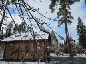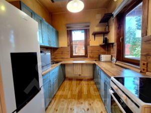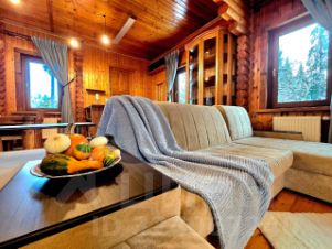 Основной дом 130квм Коммуникации: газовая система отопления, водоснабжение, центральная канализация, кондиционер. Дом состоит из 1эт: большой гостиной 40квм с большим раскладывающимся диваном, обеденная зона, кухня, санузел. 2эт: две спальни, гардеробная, кабинет с видом на сосны.