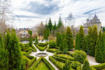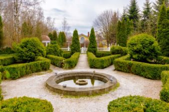 • Ландшафтный дизайн участка с фонтаном, ротондой и беседкой.