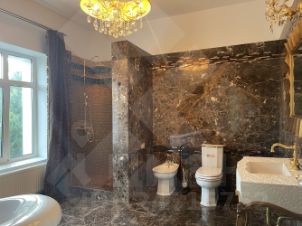 На ухоженом участке сландшафтным дизайном построен бассейн 10 метров с сауной, джакузи, зоной отдыха и баром. И отдельностоящий гараж 250 кв. м., на 3 м/м. На 2 этаже с квартирой для персонала.