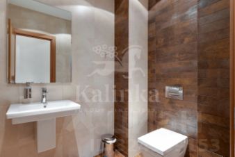 1 этаж: две гардеробные, гостиная, кухня-столовая, спальня с гардеробом и ванной комнатой, постирочная, кинотеатр. СПА-зона: бассейн, сауна, душевая, санузел; гараж на 2 м/м с квартирой для персонала.