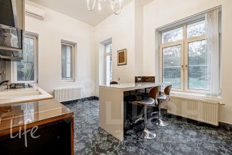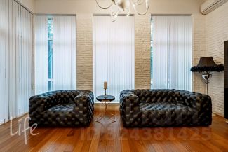 Интерьер в классическом стиле, в мягких пастельных тонах. Со вкусом подобранная мебель и аксессуары, привезенные из Италии под заказ. Гостиную украшает дровяной камин.