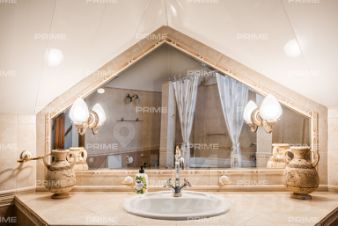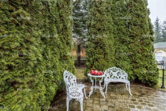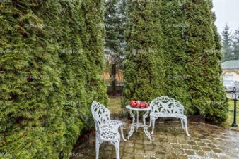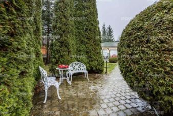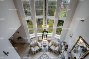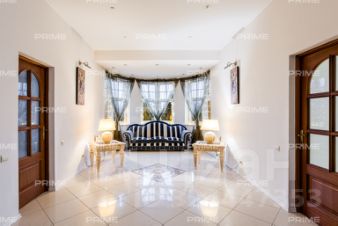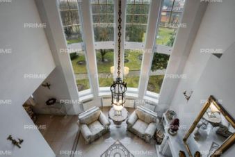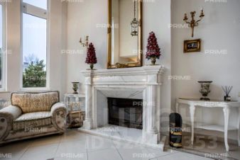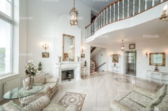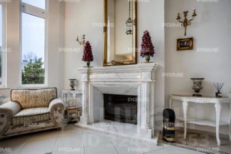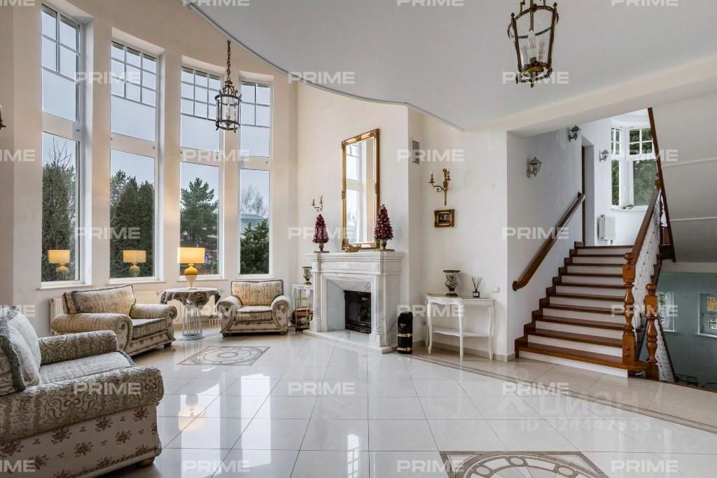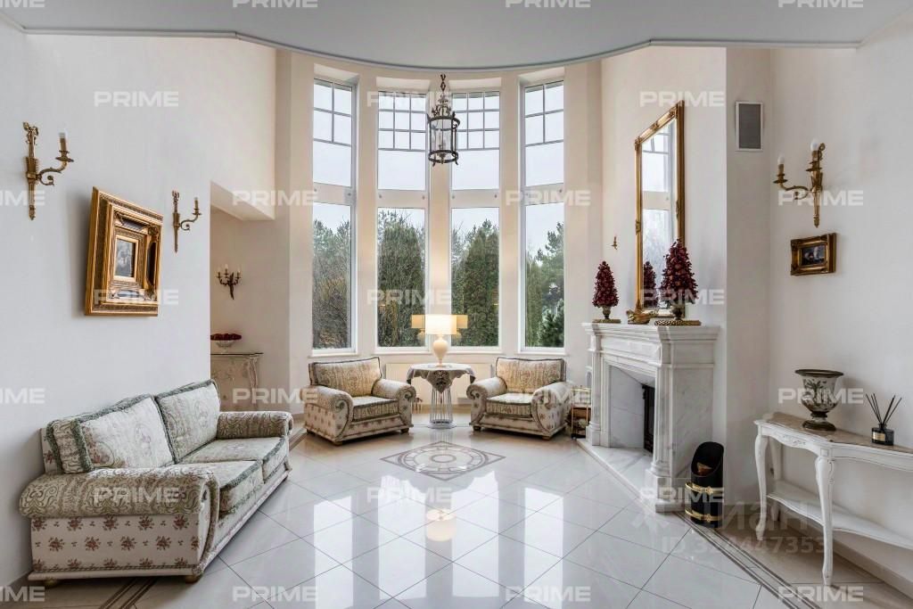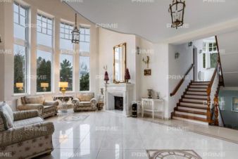 Трёхэтажное строение включает пять уютных спален, впечатляющую гостиную с двухсветным пространством и камином, функциональную кухню-столовую, а также сауну и комнату отдыха. Дополняет комфорт гараж на два автомобиля и тёплая беседка, а также отдельно стоящий дом для персонала.