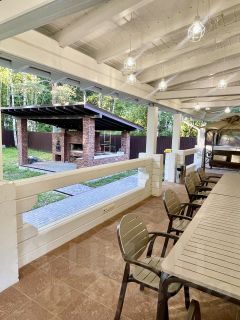 1 этаж -большая кухня с гостиной около 120 м2 с камином, большая мастер-спальня с санузлом, болерная, прихожая, гостевой санузел, постирочная, веранда.