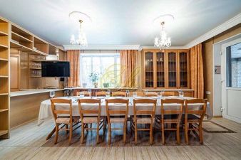 ОБ УЧАСТКЕ: большая зона барбекю , теннисный корт , пруд на участке парковка на 14 машин. участок 100 сот О ДОМЕ: 980 м.кв., 2 этажа Комфортное размещение за столом до 40 человек. На ночь до 26 человек. 7 спален 7 спален , 6 санузлов , большой теплый бассейн, джакузи , купель , хаммам , огромный каминный зал, Заезд после 16:00, выезд до 12:00. СТОИМОСТЬ: Стоимость указана за будний день до 15 человек.