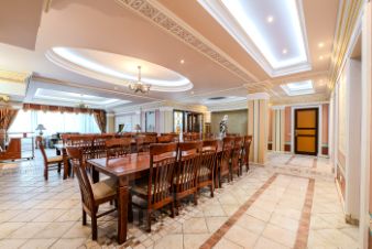 Вилла Аксиньино — это прекрасное место для мероприятий в окружении природы с высоким уровнем комфорта. Основной дом предлагает девять уютных спален с собственными санузлами, еще три спальни находятся в уединенном гостевом домике. В собственном ресторане банкетный зал с профессиональной кухней и оборудованием для мероприятий. Из него открывается живописный вид на Москва-реку и окрестности. Гостям также доступен спа-комплекс с бассейном и сауной для полного расслабления. Для активного отдыха предусмотрены спорткомплекс и теннисные корты. Всё это располагается на обширной территории площадью 9626 м², что делает это место идеальным для семейных и корпоративных мероприятий.