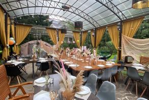 ОБ УЧАСТКЕ 50 сот: крытая зона барбекю беседка на 30 человек детская горка банно-спортивный комплекс 700м.кв. с бассейном 15х4 и дровяной баней на 15 человек крытый теннисный корт детский батут садовые качели песочница для детей беседка для чаепития 10 парковочных мест рядом смeшaныe лeca, в кoтopыx мoжнo coбиpaть гpибы, a зимoй кaтaтьcя нa лыжax. О ДОМЕ: 500 м.кв., 3 этажа Комфортно размещение до 30 человек. На ночь до 22 человек. Всего 8 спален . Цокольный этаж: спальня ( 2 раскладных дивана) караоке бильярд спальня (2 раскладных дивана) 1 этaж: кухня гостиная на 30 человек каминный зал с/у спальня ( двуспальная кровать+с/у+душ) 2 этaж: спaльня (двycпaльнaя кpoвaть+раскладное кресло+с/у+душ). спaльня (2 полуторные кровати+с/у+ванна). кабинет ( раскладной диван) игровая комната 3 этаж: спальня ( двуспальная кровать+2 дивана+с/у) СПА-комплекс 700м.кв.: бассейн 15х4 теннисный корт пинг-понг комната отдыха ( можно использовать, как спальню) комната отдыха с/у 2 душевые баня на дровах на 15 человек Заезд после 16:00, выезд до 14:00. СТОИМОСТЬ: Стоимость указана за будний день. Выходные от 140000. ДОПОЛНИТЕЛЬНЫЕ УСЛОВИЯ: Уборка 10000, баня 10000.