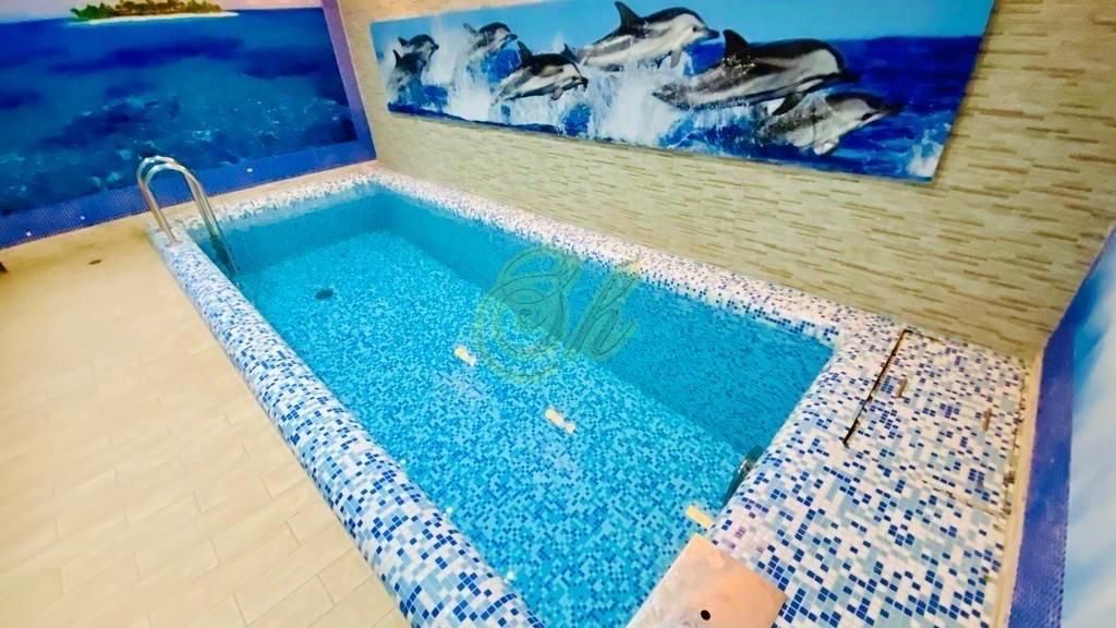 ОБ УЧАСТКЕ: бассейн 10х5, шезлонги, зона для костра, мангальная зона, мини футбольное поле, батут, терраса можно организовывать выездную регистрацию или фуршет на улице, по периметру участок засажен елями, парковка на 15 машин, закрытый коттеджный поселок ( шлагбаум с охраной) О ДОМЕ: 500 кв.м. 3 этажа Всего 7 спален ( 2 из них проходные) Цоколь: бассейн с подогревом 5х2 сауна с/у+душ ( с эффектом хаммама) комната отдыха ( 2 раскладных дивана) 1 этаж: кухня-гостиная каминный зал ( музыкальная колонка+ караоке с 2-мя микрофонами) банкетный зал ( с пианино, теннисом и бильярдом) спальня ( двухспальная кровать+ с/у+ душ+джакузи) спальня проходная ( круглая кровать) 2 выхода на террасу 2 этаж: спальня ( двухспальная кровать+ТВ) спальня ( двухспальная кровать+полуторная кровать) спальня проходная ( двухспальная кровать+диван раскладной) спальня (двухспальная кровать+диван раскладной) с/у+джакузи 3 этаж: мансарда ( 4 двухспальные кровати+диван угловой раскладной) Заезд после 16:00, выезд до 14:00. СТОИМОСТЬ: Стоимость указана за будний день до 10 человек. В стоимость коттеджа включены бассейн (круглые сутки), сауна (4 часа в сутки), бильярд, мангал, посуда, постельное. ДОПОЛНИТЕЛЬНЫЕ ПЛАТЫ: ОСОБЫЕ УСЛОВИЯ: Обязательно в день заезда вносится залог 20000. Есть ограничения по шуму на улице после 22:00.