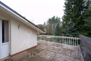 Лот 4435. Территория посёлка открыта, без охраны и шлагбаума. Предлагается дом на лесном участке 40 соток. Планировка: цоколь - помещение свободного назначения с окнами, санузел, сауна, душевая. 1 этаж - холл, гостиная с камином, кухня, спальня, санузел, выход на террасу и участок. 2 этаж - 4 спальни, санузел, балкон. Гараж на одну машину.