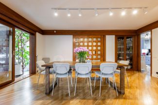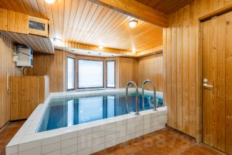 Первый этаж: прихожая, санузел, маленький бассейн с душевой, кухня, столовая и гостиная. 1 спальня со своим санузлом. + зимний сад