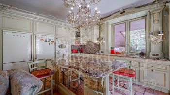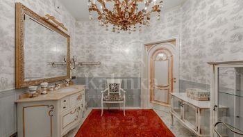 Интерьер, в духе европейской классики: лепнина , люстры, антикварные акценты и ручная работа.