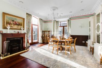Внутреннее оформление дома выполнено французскими дизайнерами с применением оригинальных французских и итальянских интерьерных решений - текстиля, элементов мебели, освещения; стекла, фарфора и фаянса. Напольные покрытия, двери, лестничные пролеты выполнены из ценных пород африканского красного дерева.
