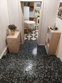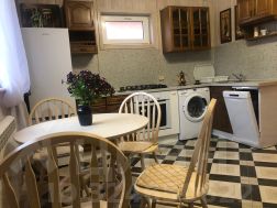 1 этаж: просторная прихожая с 2 вместительными шкафами для верхней одежды, большим зеркалом полюбоваться собой перед выходом из дома, скамейка, чтобы удобно было обуться; уютная кухня-столовая,оборудованная всем необходимым для проживания, кладовая для хранения продуктов и средств для уборки, комната отдыха, совмещенный санузел с ванной и небольшим окном, просторная спальня. Техника на кухне: холодильник, посудомоечная машина, газовая плита на 4 конфорки, духовой шкаф, микроволновая печь, электрический чайник, стиральная машина-автомат.