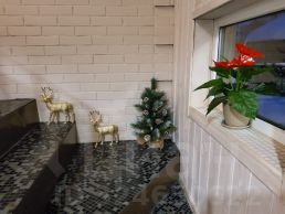 Дизайнерский ремонт с использованием качественных, экологически чистых материалов, оформленный в светлых тонах и подобранной со вкусом мебелью, придает дому невероятный уют. В нем будет очень приятно встретить приближающийся Новый год. А летом устраивать барбекю на зеленой лужайке под тенью дуба или в комфортной беседке и лакомится фруктами и ягодами, выросшими на участке.