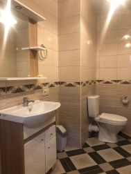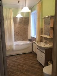 2 этаж: Гостевая комната с диваном, детская спальня с двумя кроватями и большим угловым диваном, совмещенный санузел с ванной и большим окном с замечательным видом из окна.
