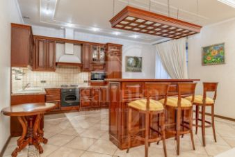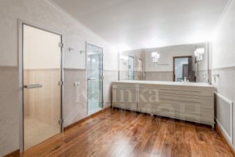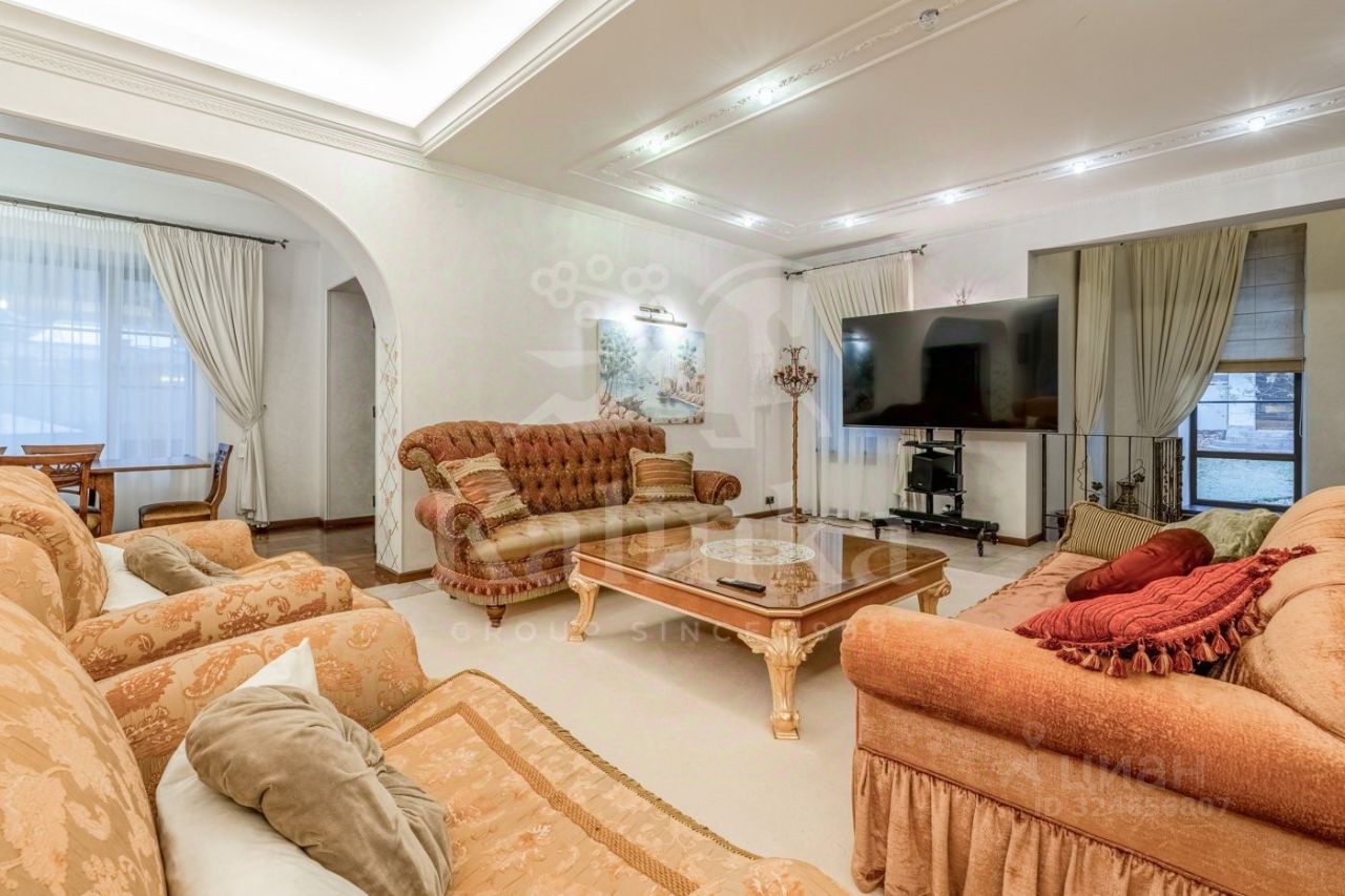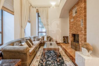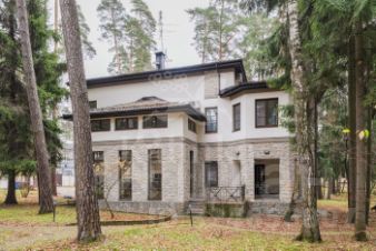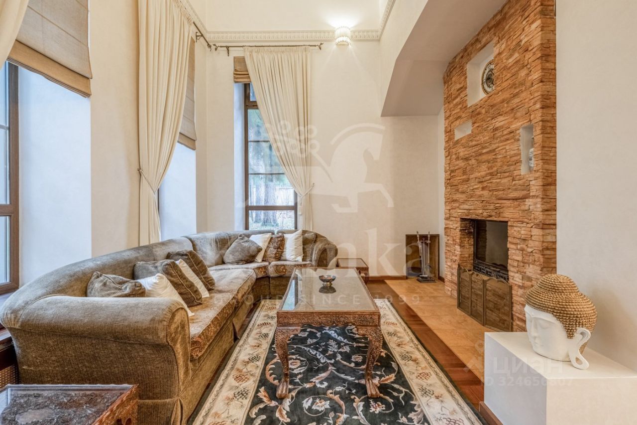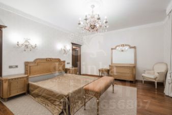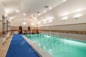 Коттедж с авторским дизайном интерьера в лучшем поселке на Рублевке. Грамотная планировка: 4 спальни, кабинет, гостиная, столовая, каминный зал, сауна, бильярд, спортивный зал, отдельный вход в блок для персонала (2 комнаты), изолированный от хозяйской части. Бассейн находится в отдельном доме.