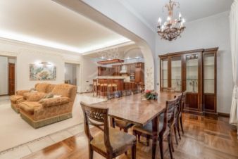 Цокольный этаж: 2 комнаты с отдельным входом, гараж на 2 автомобиля, блок для обслуживающего персонала (1-комнатная квартира);
