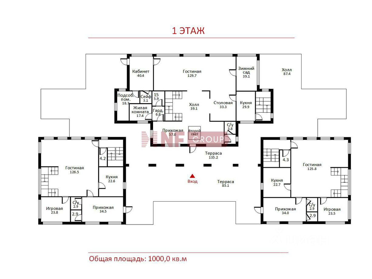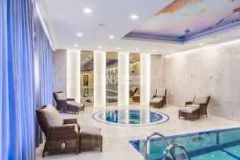 18 спален, 5 залов, 5 кухонь, 2 бассейна, 2 хамама, сауны, джакузи, террасы, зимний сад, бруклинский мост, подземный паркинг.
