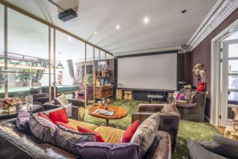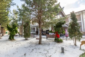 1 этаж: холл, приемная, гостиная-столовая, каминная, кухня-столовая 50 метров с выходом на участок и кладовой, кинотеатр, бильярдная, спальня со своим санузлом и гардеробной комнатой с окном, гостевой санузел, постирочная, два гаража на 3-4 автомобиля с кладовыми. СПА-центр: бассейн, сауна, санузел, зона отдыха с зимним садом, выход в барбекю-зону, бойлерная. Второй этаж СПА-центра: 3 гостевые спальни со своей кухней, массажный кабинет, санузел.