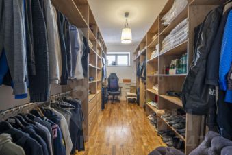 В доме 2 этажа, пять спален со своими гардеробными и ванными комнатами и санузлами, 3 гостевых спальни, бассейн, сауна, можно обустроить хамам, два гаража, навес для автомобилей: