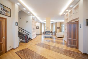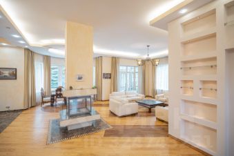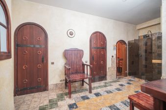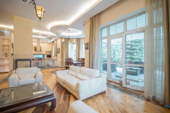 цокольный этаж: бильярдная, домашний кинотеатр, хамам, финская баня, тренировочный зал, погребок, постирочная. Коттедж полностью меблирован и оборудован современной техникой.