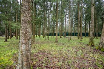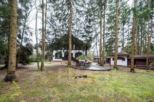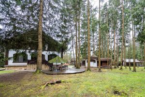 Участок: 1 Гектар (100 соток) территория, граничащая с лесом, засаженная лесными деревьями. Это личный парк для прогулок и отдыха.