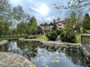 На придомовой территории расположена парковка с навесом, беседка с зоной барбекю, облагороженный пруд с подсветкой, зеленая зона с высадкой деревьев.