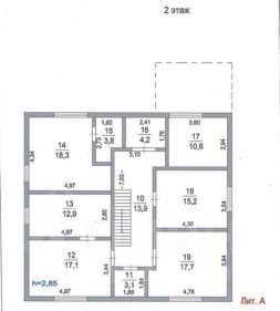 На втором этаже четыре спальни, санузел, кабинет и вторая гостиная.