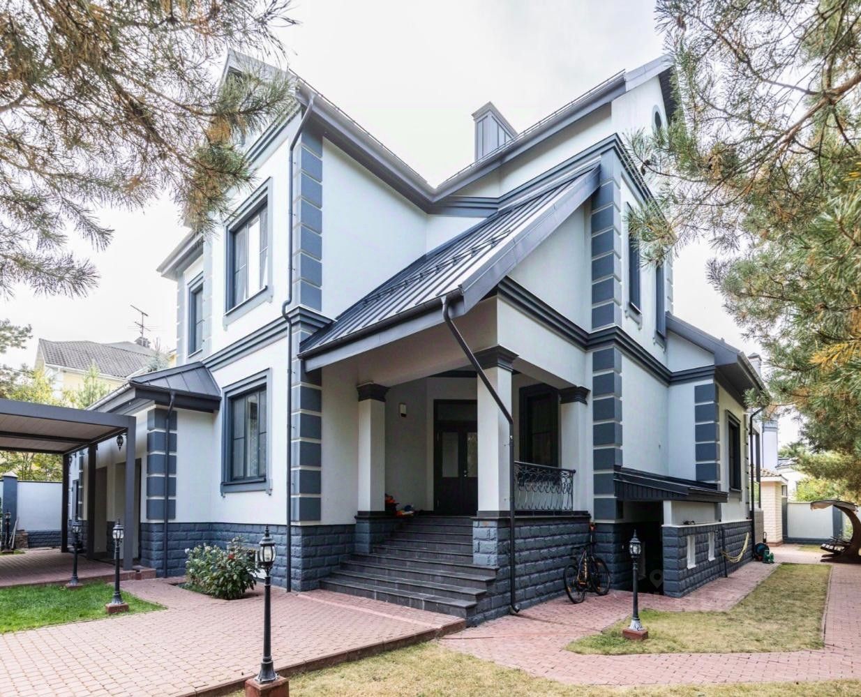 Участок правильной прямоугольной формы, на котором реализован ландшафтный дизайн. На территории есть дорожки, крытая парковка для автомобилей и беседка для барбекю. Коттеджный поселок "Романово-2", предлагаем жилой дом, полностью готовый к заселению и меблированный. Интерьер выполнен в классическом стиле, в мягких пастельных тонах. В помещении со вкусом расставлена мебель и предметы интерьера. Планировка дома создает атмосферу комфорта: четыре спальни, гостиная и зона СПА с бассейном и сауной. В гостиной установлен дровяной камин, а для персонала предусмотрена отдельная квартира. Все центральные коммуникации уже подведены. Район отличается высокоразвитой инфраструктурой, что обеспечивает удобство для жителей.