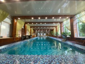 Спорткомплекс: бассейн 15 м, баня, крытый теннисный корт (мячи в наличии), настольный теннис, душевые, 2 спальни.