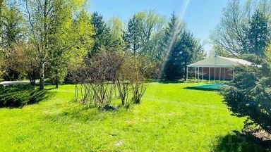 ландшафтный дизайн, много зелени, посажены кустарники, деревья, цветники.