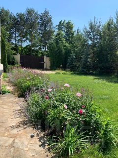 Территория участка 20 соток: ландшафтный дизайн, газон, туи, ели. По периметру участка высокий забор с 2-мя въездными автоматическими воротами, гараж на 2 машины, на участке парковка на 6 автомобилей для гостей.