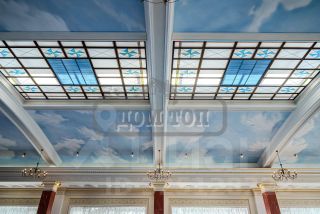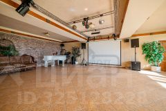 РЕСТОРАН банкетный зал оборудован кондиционером: 200 кв.м. на 100 персон, панорамные окна с видом на берегу Москва-реки и зеленые луга; профессиональное световое и музыкальное оборудование; барная стойка, холл гардеробная; 3 с/у; пианино, диско-шар. Профессиональная кухня с оборудованием.
