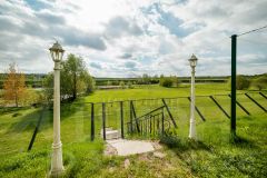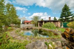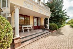 УЧАСТОК: красивая территория 80 соток с ландшафтным дизайном и множеством лиственных и хвойных деревьев. Вымощены дорожки, установлены фонари. Пруд с мостиком. Место для выездной регистрации, много фотозон. Теннисный корт с грунтовым покрытием. Множество декоративных элементов: альпийская горка, фонтан и др. Парковка на 20 автомобилей. Баня на дровах с видом на пруд.