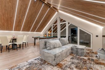 Всё для отдыха большой компании: несколько зон отдыха, полностью оборудованная кухня, удобные спальные места.