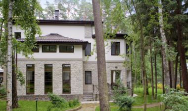 Красивый дом на лесном участке с соснами. Авторский дизайн