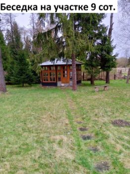 На участке также расположена деревянная, остекленная круглая беседка.