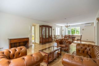 Дом частично меблирован и укомплектован всей необходимой бытовой техникой. На территории дополнительно расположен гостевой дом с гаражом (общей площадью 160 кв.м., оборудованный мебелью и техникой), беседка, поленница, бытовка.