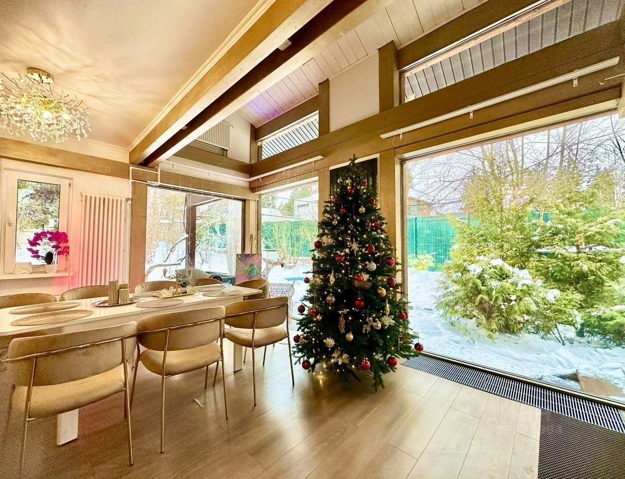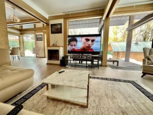 На втором этаже огромны хол с гардеробной, мастер спальня с кроватью 200 на 200, матрасом 45 см (Кing Коiil самые дорогие матрасы в мире ). Еще одна спальня с рабочим столом и шикарным видом на участок с вековыми соснами. Ванная с панорамным остеклением на участок. В каждой спальне телевизоры, пуховые подушки и одеяла для вашего шикарного сна!