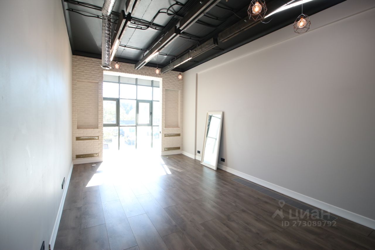 Планировка: студия со всеми необходимыми подключениями для кухонной зоны, просторный совмещенный с/у с душевой кабиной (вся сантехника и мебель для ванной установлена), выгородка у окна за колоннами. Большое панорамное окно в пол (дополнительно гидроизолировано) с видом на красивый ландшафтный дворик. Помещение расположено в торце здания.