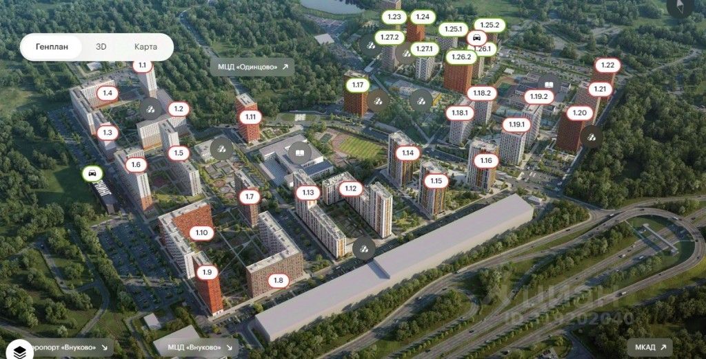 Рядом с кварталом две станции МЦД — "Одинцово" и "Внуково": до любой из них можно дойти пешком или доехать на маршрутке за 710 минут. От них легко доехать до центра Москвы или пересесть в метро на Арбатско-Покровскую, Таганско-Краснопресненскую или Замоскворецкую линию метро. Корпус 3.8.