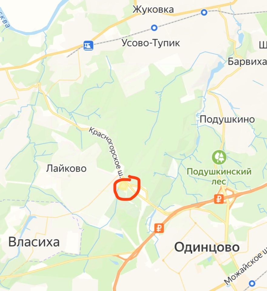 Участок находится на первой линии Красногорского шоссе вблизи заправочной станции ОРТК по направлению к Одинцово и выезду на платную дорогу.