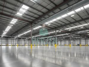 2. Нагрузка на пол 5 тонн/м2., покрытие - антипыль, высота до низа ферм 12,5 метров, ворота оборудованы докшелтором и доклевеллером, из расчета 1 ворота на 700-800 м2 площади.