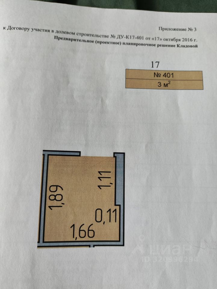 Продаю кладовую 3 кв метра. Находится на -1м этаже. Я собственник. Возможен торг.