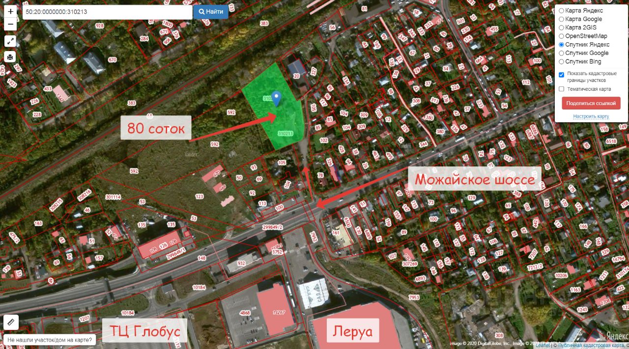 80 соток земли, 2-я линия Можайского шоссе, 100 метров от дороги. Хороший асфальтированный подъезд. Кадастровый номер: 50:20:0000000:310213. По ПЗЗ зона О1. Основные виды разрешенного использования: Объекты торговли , Объекты придорожного сервиса, Общественное питание, Гостиничное обслуживание, Развлечения, , Выставочно-ярмарочная деятельность, Спорт. К вспомогательным видам разрешенного использования относятся Склады. На участке расположен жилой 162 м2 с отделкой , 2 нежилых помещение 101 м2 и 59 м2.